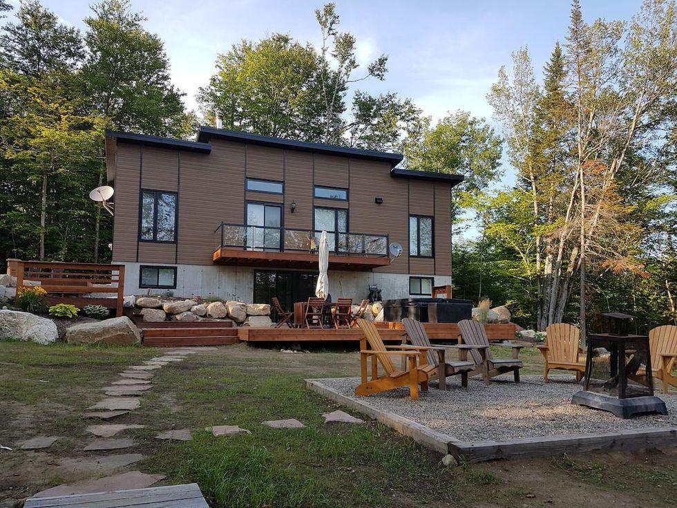Histoire de profiter pleinement des couleurs des feuilles en automne, il y a une grande terrasse avec un coin pique-nique, un barbecue fonctionnel à l'année et un spa, mais aussi un spot pour faire des feux avec tout le monde ou encore un quai, qui donnent sur les collines environnantes.