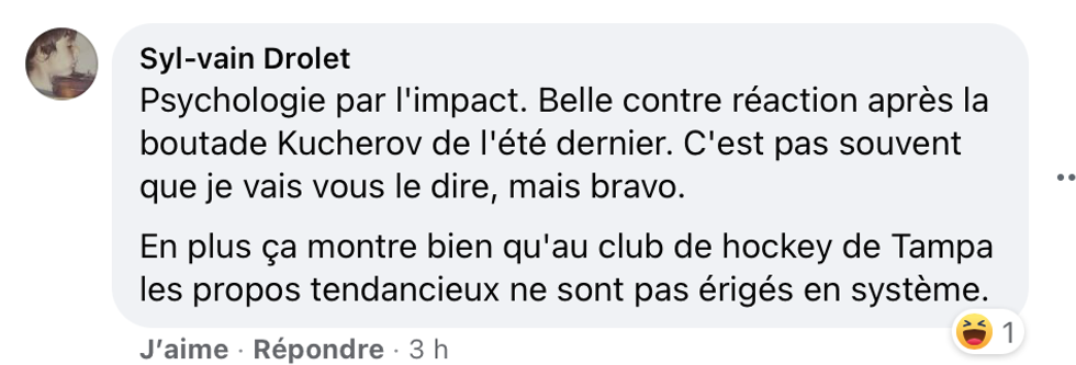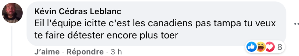 Et pour de nombreux.ses internautes, ce geste ne passe pas : « Eil l'équipe icitte c'est les Canadiens pas Tampa, tu veux te faire détester encore plus toer », lance ce Québécois.