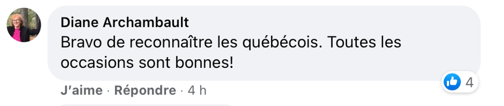 Cette internaute a de son côté félicité le premier ministre d'avoir reconnu que des Québécois font partie de l'équipe de Tampa Bay et par conséquence, le Québec y est pour quelque chose dans cette victoire.