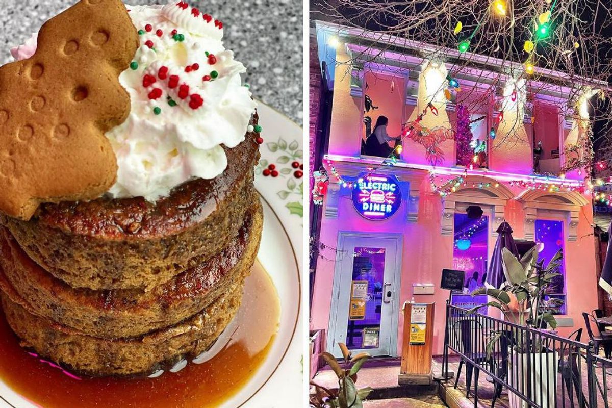 There are also festive dishes to enjoy, including gingerbread pancakes, holiday cocktails, and candy cane milkshakes.