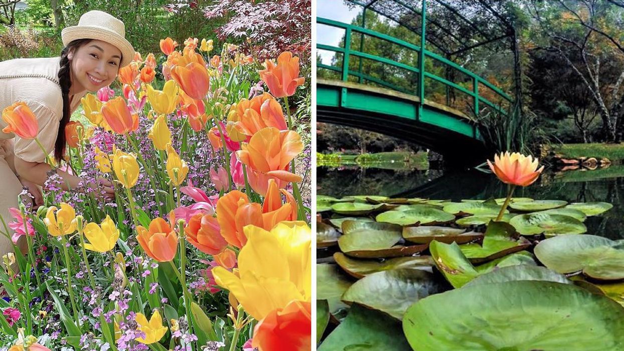 A tulip-lined path leads to the Waterlily Garden's Monet bridge, inspired by the artist's gardens outside of Paris. This gallery features five ponds that host over 140 varieties of waterlilies floating effortlessly on the surface.