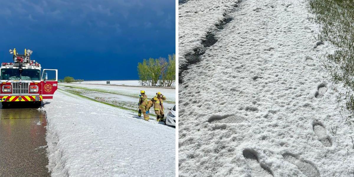 People posted photos of reduced visibility during the hail storm and of the aftermath with highways and fields buried in hail.