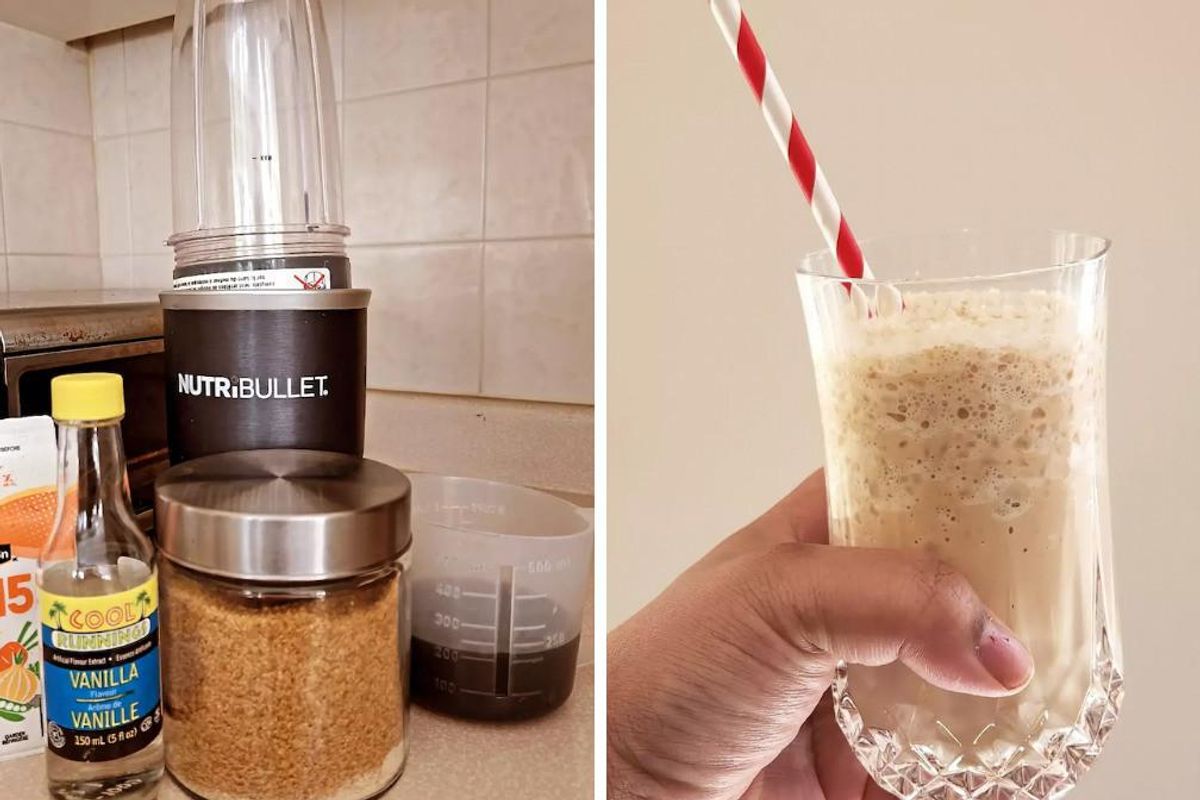 Sarah Rohoman holding a glass of homemade iced capp.Sarah Rohoman | Narcity