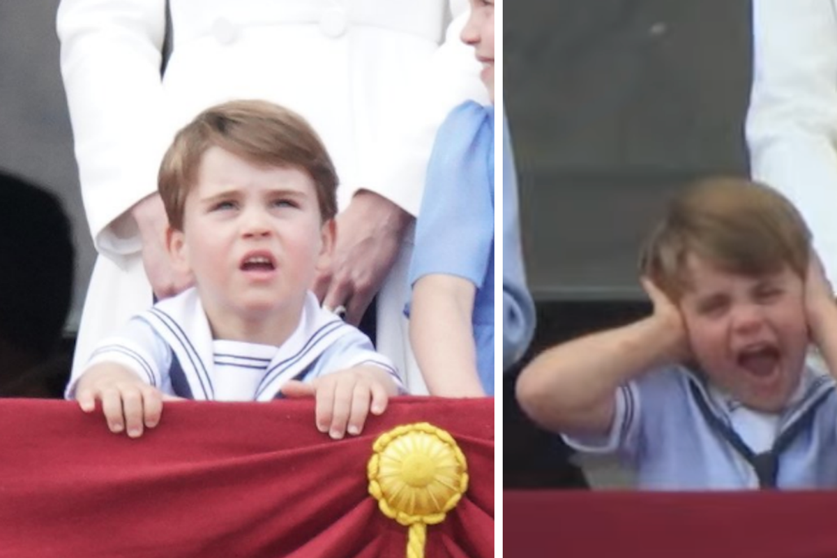 While standing on the balcony on Buckingham Palace, Louis waved, shrugged his shoulders, held his face with both hands, chatted with his family members and seemed to be generally over the whole thing.