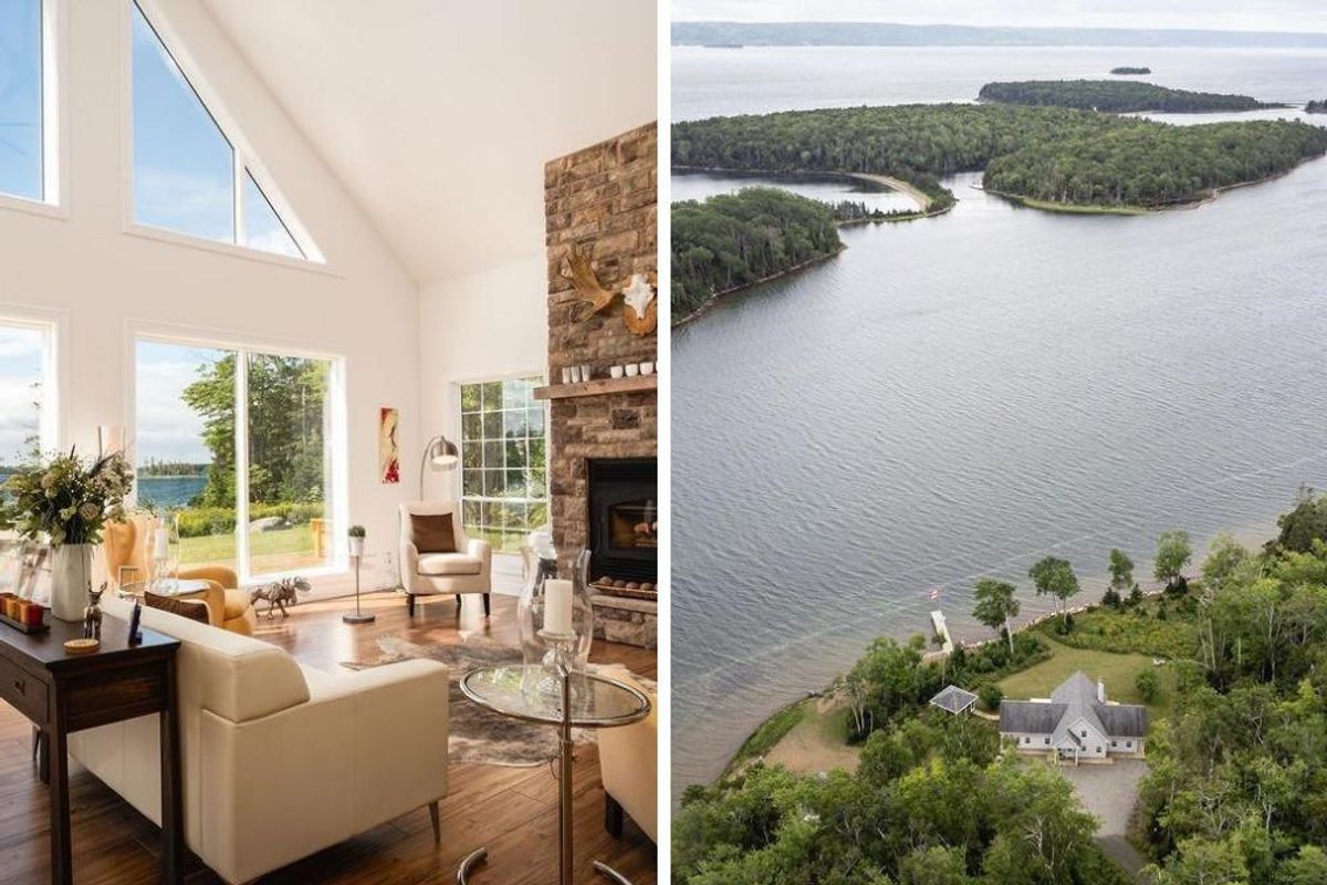 The home is on 6.5 acres of land and has 850 feet of shoreline on Bras d'Or Lake, including its own private sandy beach.