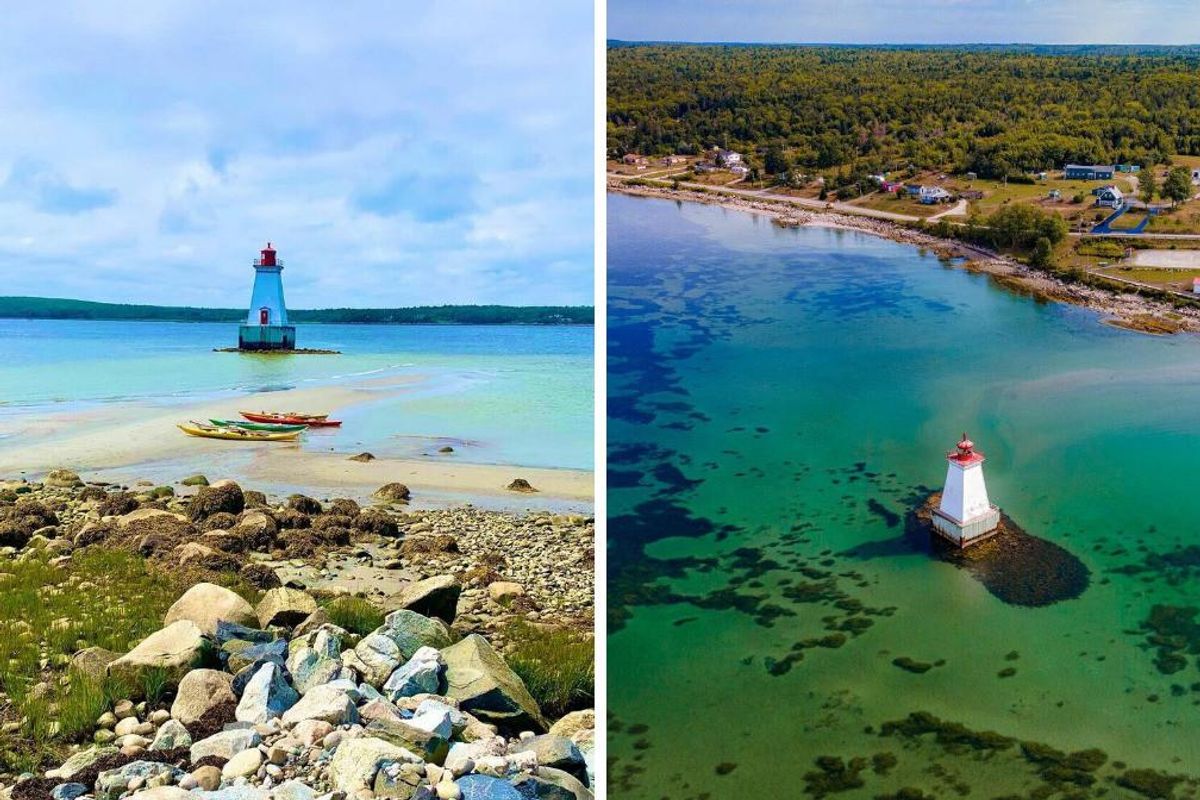 If you're not ready for summer to end and still want to explore dreamy coastlines and white-sand beaches, you can visit this sandbar in Canada where you walk right out to a lighthouse on the water.