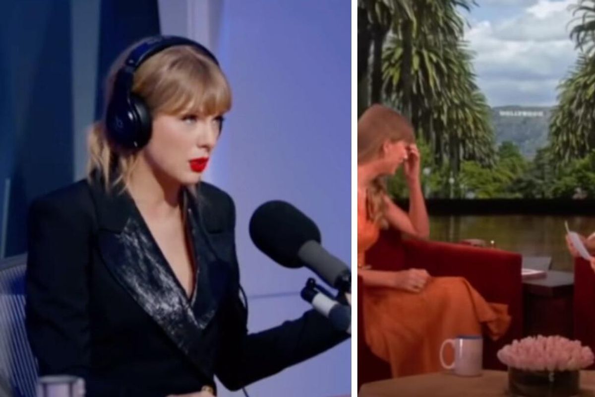 A TikTok account posted a video showing two Swift interviews side-by-side, one from a 2019 interview with Zane Lowe and the other being a 2014 interview on The Ellen Show.