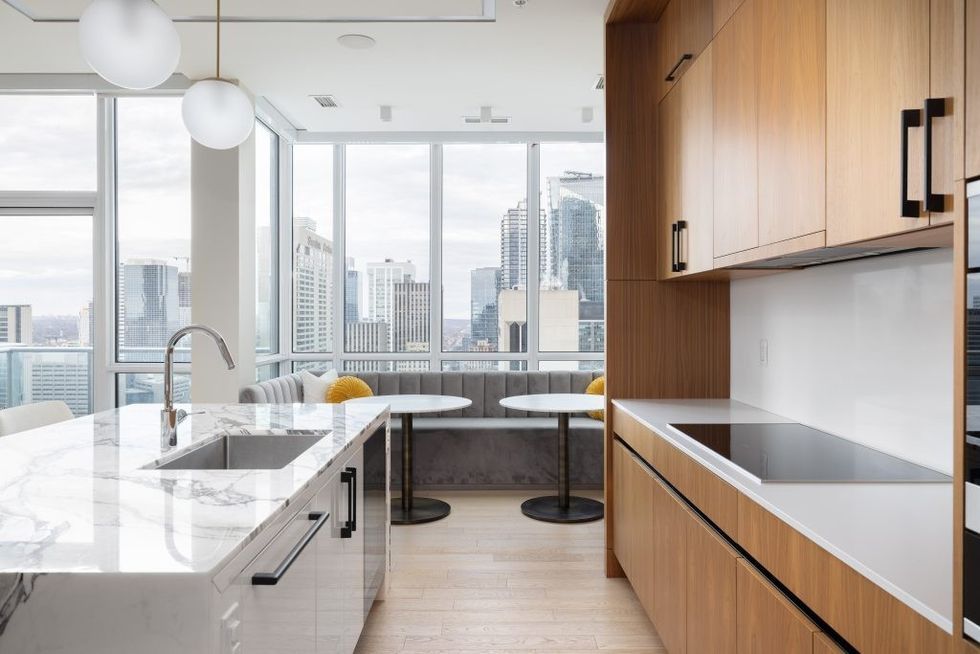 PH102 at 199 Richmond Street West was initially listed for $5.3M in June 2022, but was taken off the market after more than 100 days without a sale. The three-bedroom, three-bathroom abode has now been re-listed by three brokers, Ramin Khaze, Lina Porretta, and Francesco Porretta, with a $4.5M asking price.