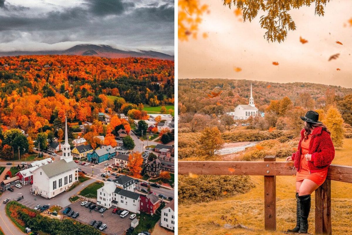 This stunning small town near Ontario looks like a fall dream come true and it's just a road trip away from the province. Stowe, Vermont is a picturesque village located about a 3 and a half hour drive from the Ontario border and it's a stunning place to experience the New England fall.