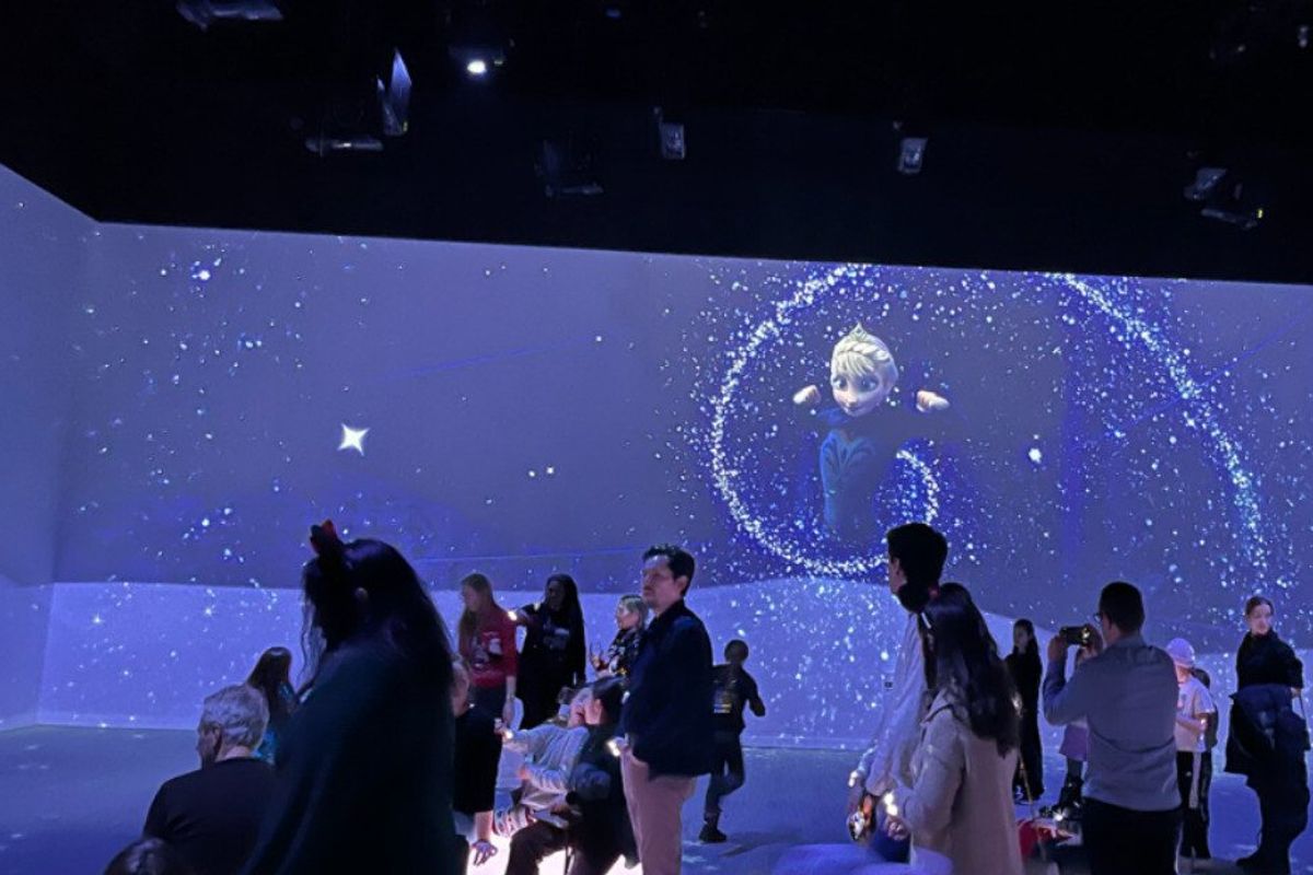 Salle principale de l'Immersive Disney Animation à Montréal. Alexe Fortier | Narcity Québec