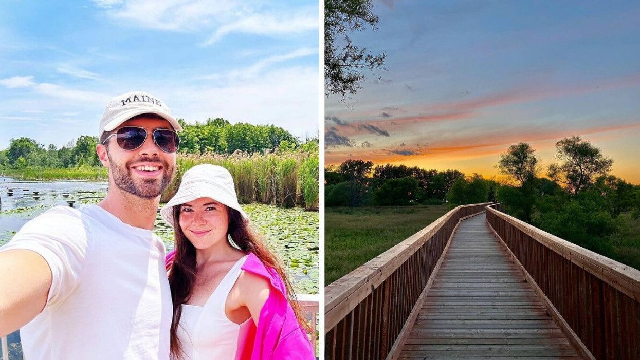 Pourquoi tu dois y aller : À seulement une heure et demie de route de Montréal, cette passerelle de 710 mètres au coeur du Parc écomaritime de l'Anse-du-Port permet au public de se balader en plein air et de faire un pique-nique sous l'un des quatre abris se situant sur le chemin. Ensuite, tu peux terminer le tout au sommet d'une tour d'observation de 40 pieds donnant sur le lac Saint-Pierre. Il est aussi possible de découvrir des sentiers pédestres et des panneaux d'interprétation décrivant les écosystèmes présents, ce qui en fait un endroit parfait pour passer une journée d'exploration complète.