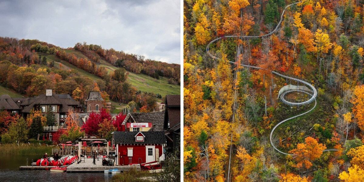 Ontario's 1 km mountain coaster twists through a fall wonderland with views of a cozy village