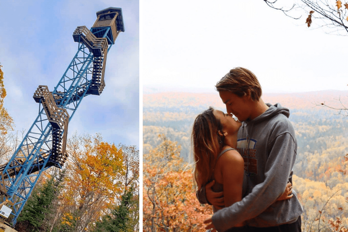 À environ 3 h 30 de Montréal, près de Cayamant en Outaouais, se dresse une impressionnante tour d'observation de 125 marches, offrant une vue spectaculaire sur la forêt environnante. C’est l’endroit idéal pour contempler la nature dans toute sa splendeur. Que tu sois blotti contre ta personne préférée ou que tu viennes d’achever une belle randonnée avec tes ami.es, admirer les dégradés de jaune, rouge et orange ne manquera pas de revitaliser tes jambes et ton cœur.