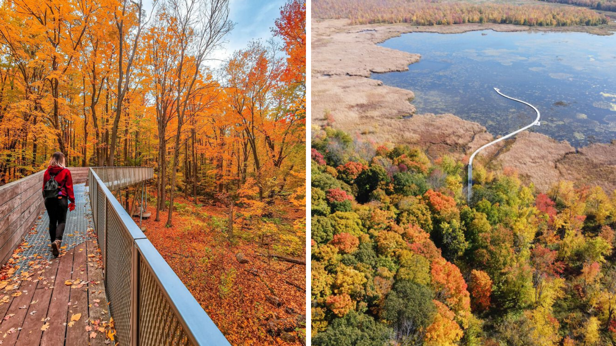 Quand les paysages se parent de leurs couleurs d'automne, le moment est tout indiqué pour partir à la recherche des sentiers de randonnée environnants. Afin de t'éviter de fouiller à travers le Web, on a rassemblé neuf endroits avec des passerelles près de Montréal où profiter de cette beauté éphémère au Québec. Ce ne sont pas les lieux magnifiques en nature qui manquent dans la région et plusieurs adresses ne demandent qu'à être ajoutées à ta bucket list.