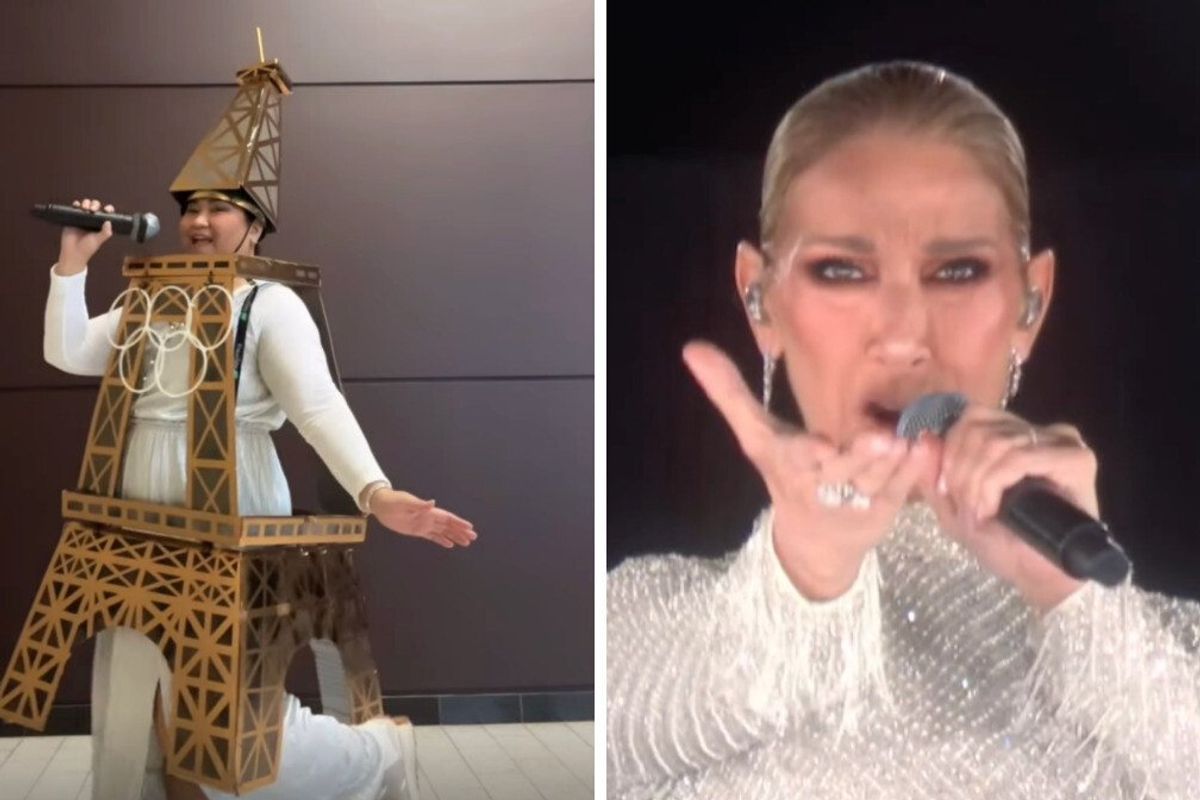 Céline Dion a eu droit à toute une visibilité, tandis qu'une Montréalaise a particulièrement fait jaser, avec son costume fait à la main avec brio. Elle ne s'est pas contentée d'interpréter la chanteuse, mais plutôt d'intégrer littéralement la chanteuse dans la tour Eiffel.
