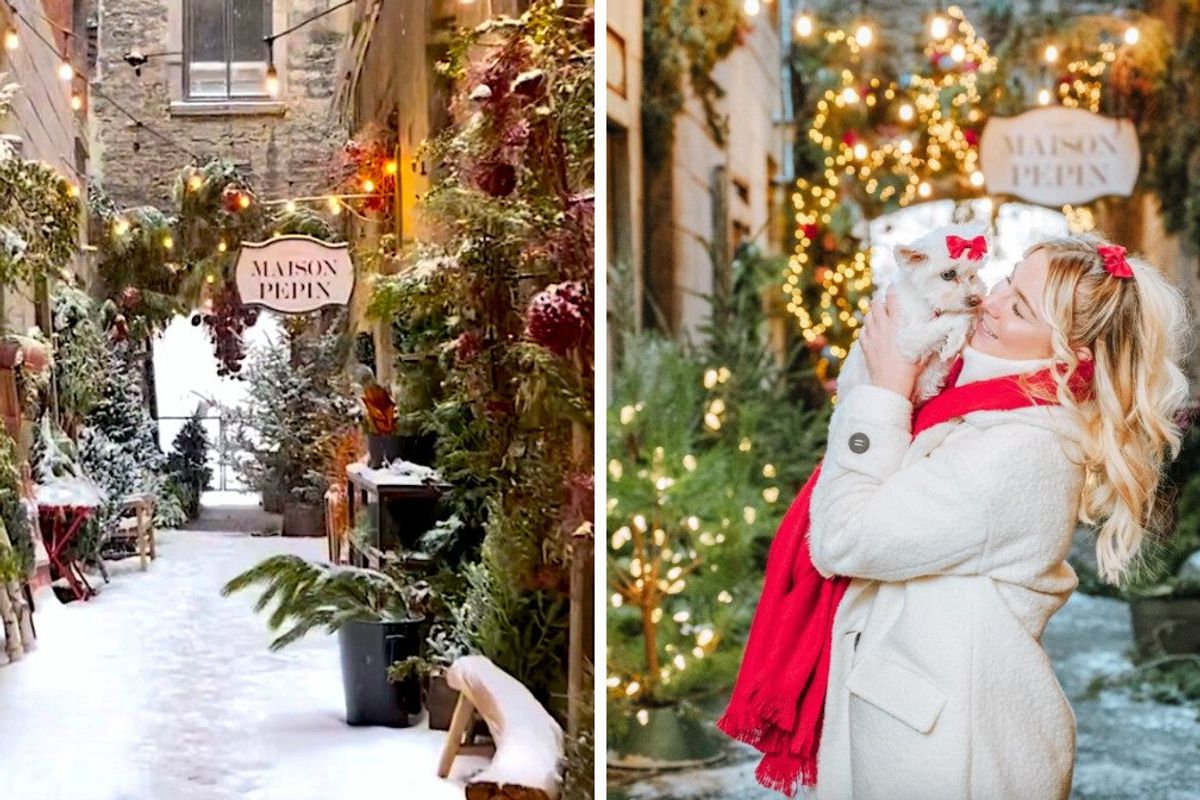 Il s'agit de la ruelle de la Maison Pépin, réputée pour être l'un des endroits les plus « instagrammables » de la métropole pendant cette période féérique de l'année, alors que le Vieux-Montréal a encore plus de cachet qu’à l’habitude si tu veux mon avis. Les briques et l'architecture de la ville donnent envie de s'y prélasser avec une boisson chaude à la main, en attendant son miracle de Noël.