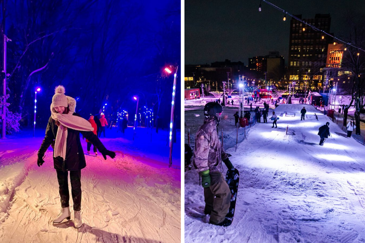 Pourquoi tu dois y aller : Dès le 16 janvier, tu peux descendre des pentes en planche à neige snowskate, en trottinette des neiges ou en luge à la station de glisse urbaine des Jardins Gamelin. Cette année, quatre nouvelles pistes réfrigérées t'attendent, alors si tu veux avoir une expérience de sports d'hiver qui inclut même l'après-ski (oui, oui, il y a un chalet chauffé et du bon café [$] à déguster), tu n'as même pas besoin de quitter la métropole.