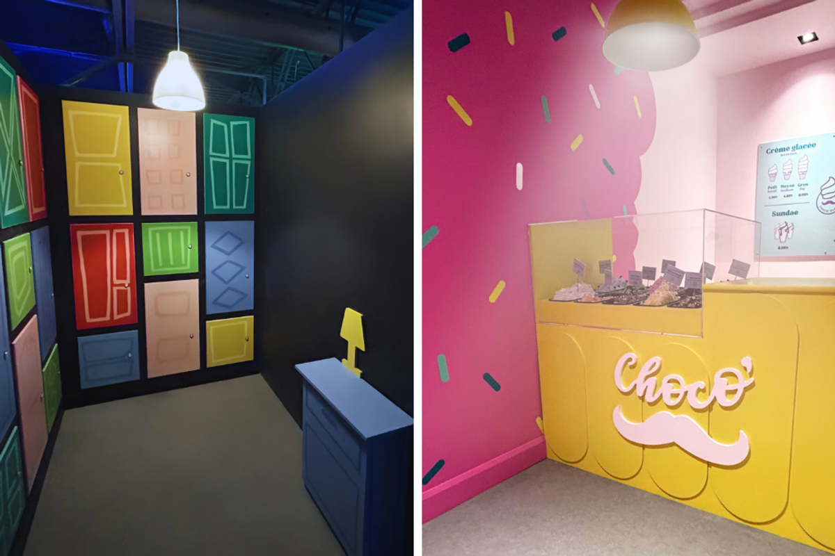 Ce projet d'environ 1,7 million $ a demandé deux ans de conception pour voir le jour, et 20 premières salles seront inaugurées au mois de mai sur la rue Bouvier. Que ce soit en couple, entre ami.e.s ou en famille, ce sera l'occasion de tester tes talents de communication, ton adresse ainsi que tes capacités mentales et physiques. Construction d’un château avec des cartes géantes, lancer au panier, interactions sur plancher lumineux, associations de couleurs, formes, chiffres ou directions, constructions qui doivent respecter certaines restrictions - voici quelques exemples de ce qui t'y attend.