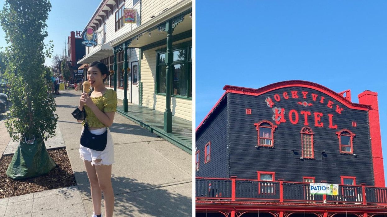 The historic downtown area of Cochrane is especially charming, with its iconic hotel as a landmark — The Rockyview Hotel. The hotel is 100 years old and looks like it's been plucked from a movie set, but it's renovated now, and you can actually stay there.