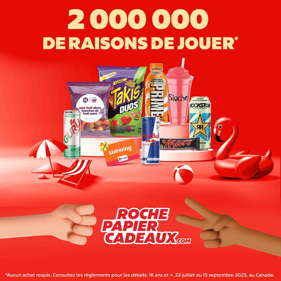 Et ce n’est pas tout : il y a aussi des tonnes de prix instantanés comme des boissons Red Bull, des Sloches, des Polar Pops, des Takis, des bonbons, des rabais sur l’essence et plus encore. Tous les prix instantanés peuvent être réclamés dans n’importe quel magasin participant de Couche-Tard au Québec. Les gagnants des grands prix seront contactés directement par un agent.