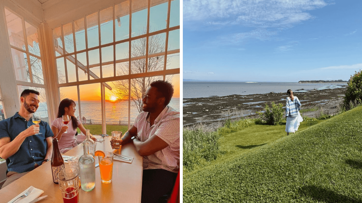 Ici, pas besoin d’un horaire chargé. Tu peux simplement suivre le littoral à pied ou à vélo et t’arrêter quand la vue te touche, admirer les montagnes de Charlevoix qui se dessinent au loin, ou t’offrir un moment de calme au spa Le Nordet. Tout invite à prendre son oublie le rush du quotidien.